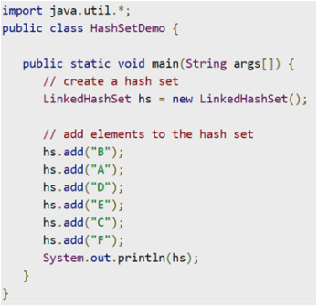 Below is the code snippet for creating a�LinkedHashSet�object.